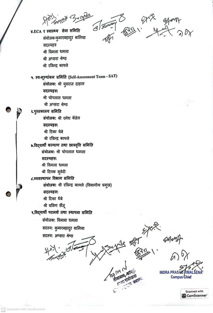 Mr. Toyanath Kafle – Coordinator Mr. Badri Prasad Dhamala – Member Mr. Tika Thebe – Member Mr. Kumar Bahadur Baniya – Member Mr. Kul Prasad Ghimire – Member Mr. Rabindra Kafle – Member Ms. Apsara Shrestha Mr. Chakra Bahadur Ghimire – Student Representative (SQC, Coordinator) Mr. Choplal Dhamala – Secretary